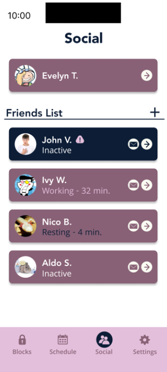This project was centered around the creation of a planning/focus app that allows users to keep track of their daily schedules and assignments while helping each other stay on task. Users can create and keep track of events on a digital schedule, set study plans that rotate between work and rest periods, block apps from being used during certain time frames, and view the progress connected users are making on their tasks.